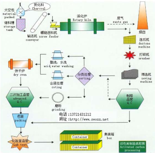 • 工藝展示活性炭是一種經特殊處理的炭,將有機原料(果殼、煤、木材等)在隔絕空氣的條件下加熱,以減少非碳成分(此過程稱為炭化),然后與氣體反應,表面被侵蝕,產生微孔發達的結構 (此過程……